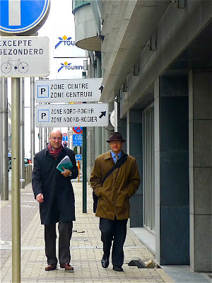 The photos were taken in the vicinity of the European Quarter in Brussels, so my guess is that these four are civil servants on the way to their offices. One of them at least has a happy smile and is looking forward to his day's work.